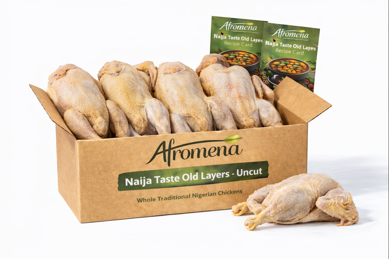 Five whole old layer chickens, uncut for customers who prefer to portion and prepare them themselves.